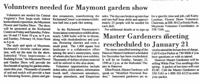 1990 – Volunteers For Flower Show Herald Progress, Volume 111, Number 24, 17 January 1990 By Elliot Schorr | February 12, 2026